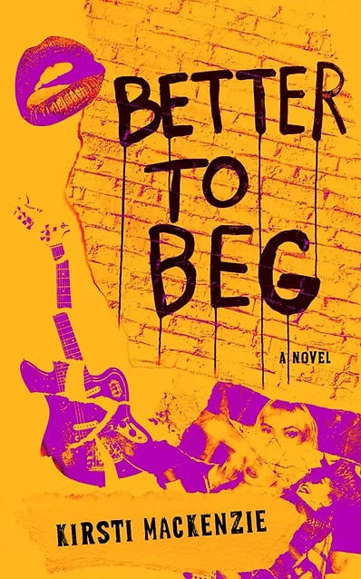 What I love about Kirsti’s writing is the huge amount of joy it conveys, she’s having a lot of fun and wants the reader to too. My favourite piece of hers is Haymaker, about boxing a kangaroo (go on, give it a read, it’s one short paragraph). So I was looking forward to Better To Beg. I wasn’t expecting it to be so triggering, lol. It’s 2003 and rock duo The Deserters give electrified performances fraught with sexual tension as they make their way around the country hoping to land a record deal. Chapters alternate being told by Viv or Hux, and while I loved and identified with Viv’s ambition, there were points where I really couldn’t stand Hux. Having been in bands my whole life, and in arguably my biggest one around that time, dealing with talented people who are nonetheless hellbent on self-sabotage are So. Fucking. Draining. And infuriating. Kirsti’s always good for a mot juste and while I admired the writing, it did really kick stuff off in me. On the other hand, the point of the book - that you just gotta get out there and do it, if that’s what you want - is a message than cannot be repeated enough times. Speaking from personal experience, I promise you that if you do, amazing things will happen. You may not hit superstardom, but you will imbue your life with meaning, and impact others in meaningful ways too. Heck, I can think of at least three children that were born (not mine) simply because I pursued making music. Those are stories for another time. For now I hope you enjoy my interview with Kirsti and are inspired to pick up her book